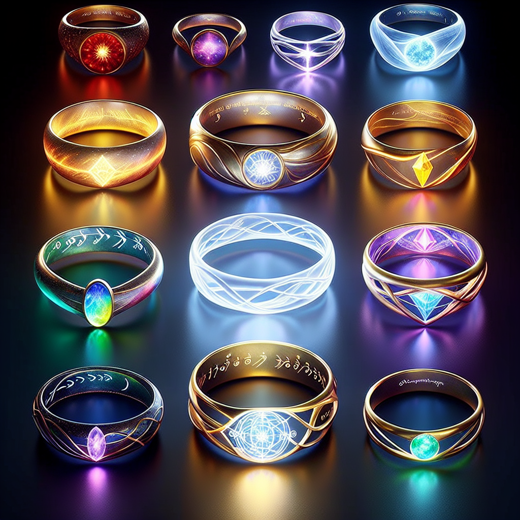 Collectively, the rings exude an aura of ancient wisdom and allure, enticing and whispering to their wielders. They are aware of the desires and fears of their owner.